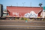 BNSF 2-bay ACF covered hopper with the BN logo bleeding thru |