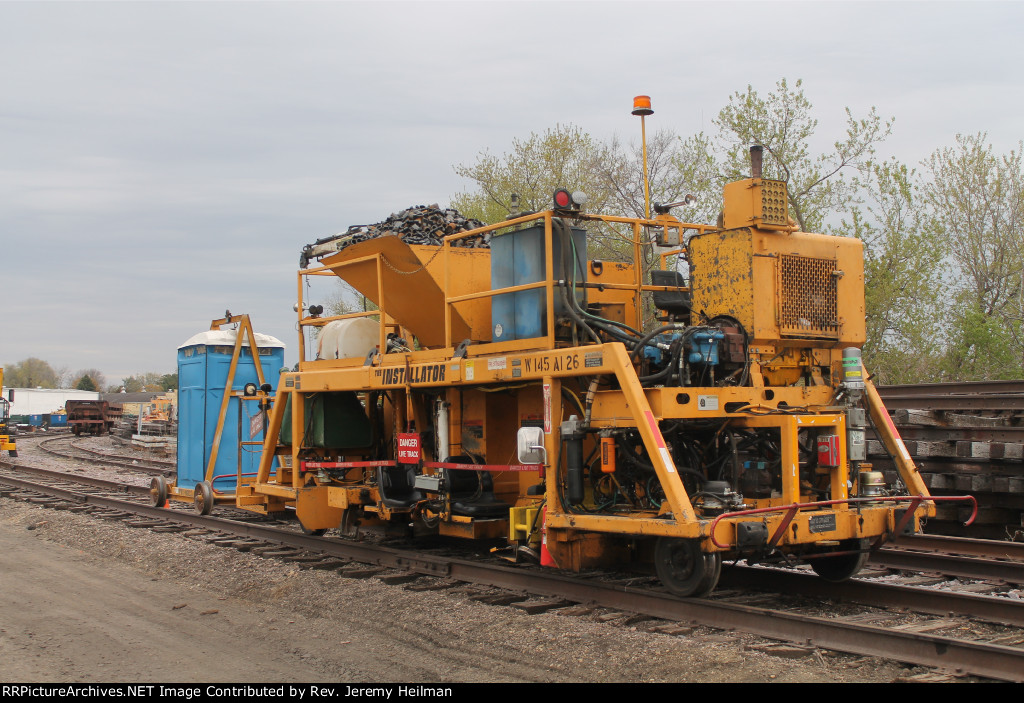 A group of UP MoW equipment ties up for the day at DeKalb, IL.