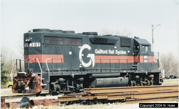 Guilford Rail 381 rests in Fremont after a day of local switching. This unit was being used by NS for a lease payback from the MEC