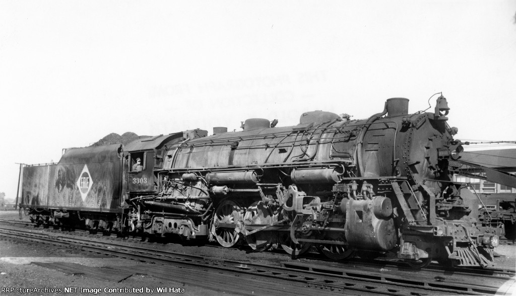Nice shot of Erie 4-6-2 Pacific #2943 but it's definitely showing some wear now as it sat in the Marion, OH yard. History - Baldwin, 5/1923 Specs - serial #56536, class K-5A, 79" drivers, 200 psi boiler pressure, 75x28" cylinders, engine weight of 323,000 lb, tractive effort of 46,121 lb. Retired and sold for scrap in September of 1951 This is a J.R. Quinn photo which is now in my rr collection.