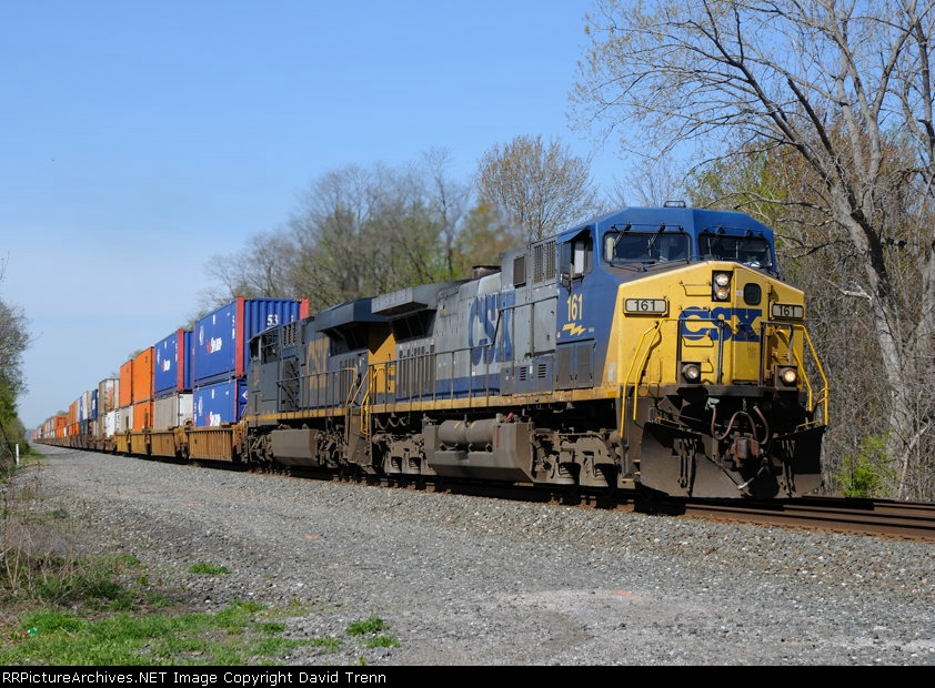 CSX 161 leads Eastbound CSX Q160 at MP122 on track number two.