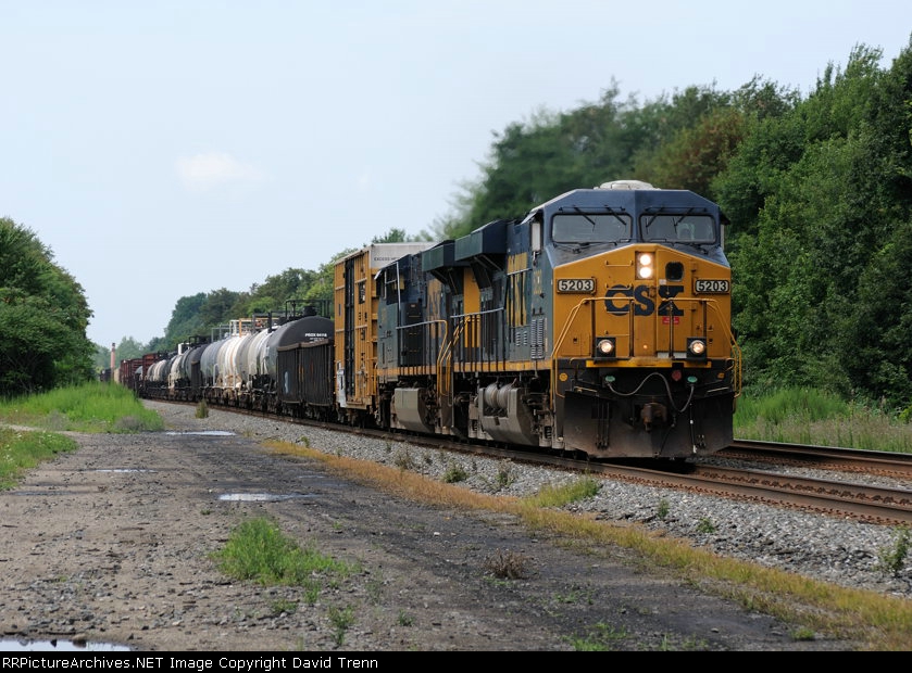 CSX 5203 leads Eastbound CSX Q378 at Harmon Rd MP 120 on track number two.