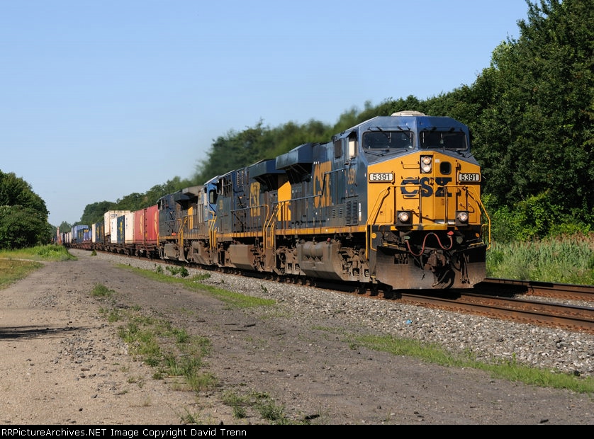 CSX 5391 leads Eastbound CSX Q114 at Harmon Rd MP 120 on track number two.