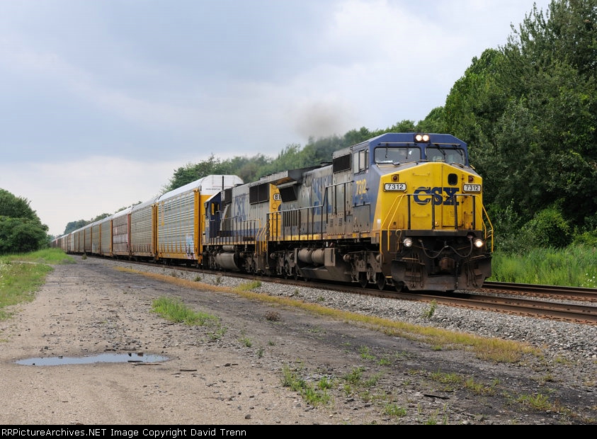CSX 7312 leads Eastbound CSX Q264 at Harmon Rd MP 120 on track nuimber two.