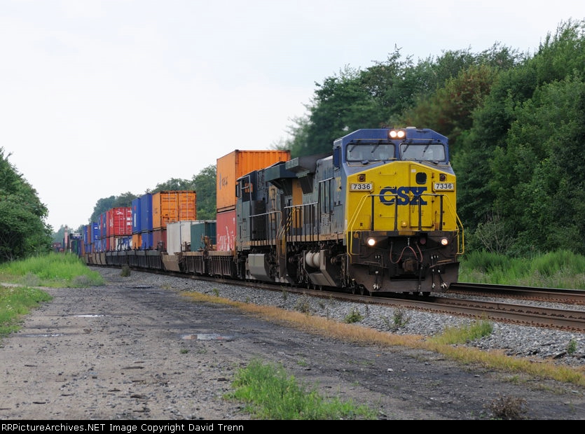 CSX 7336 leads Eastbound CSX Q164 at Harmon Rd MP 120 on track number two.