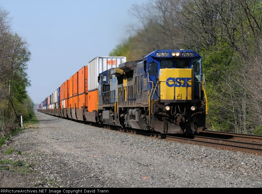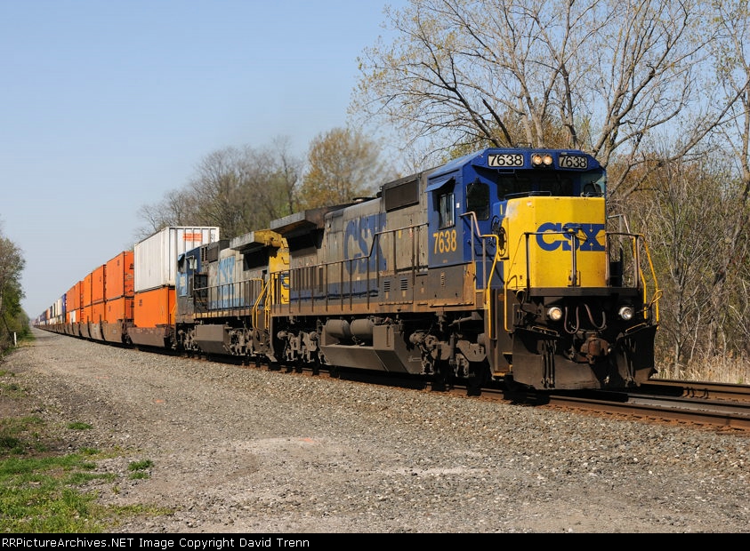 CSX 7638 leads Eastbound CSX Q160 at MP 122 on track number two.
