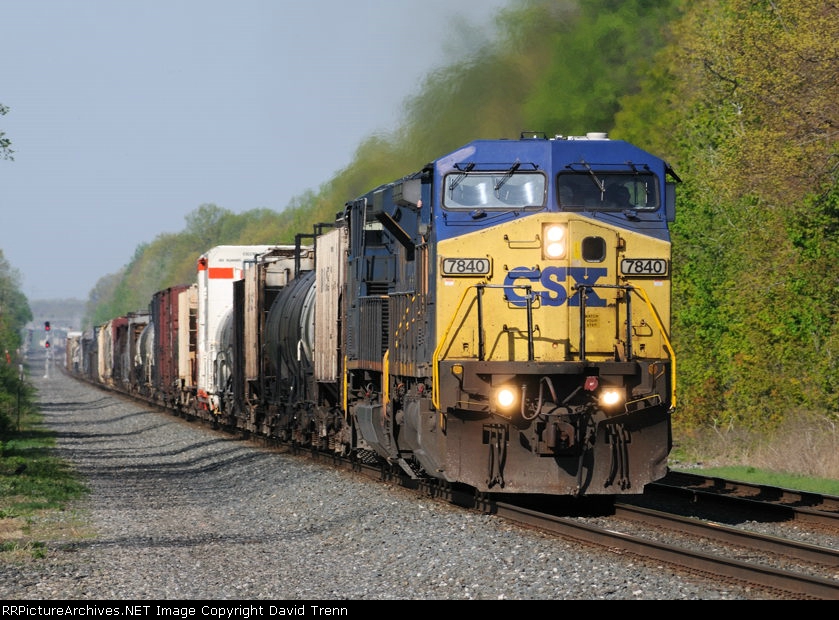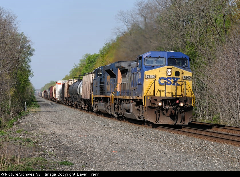CSX 7840 leads Eastbound CSX Q378 at MP 122 on track number two.