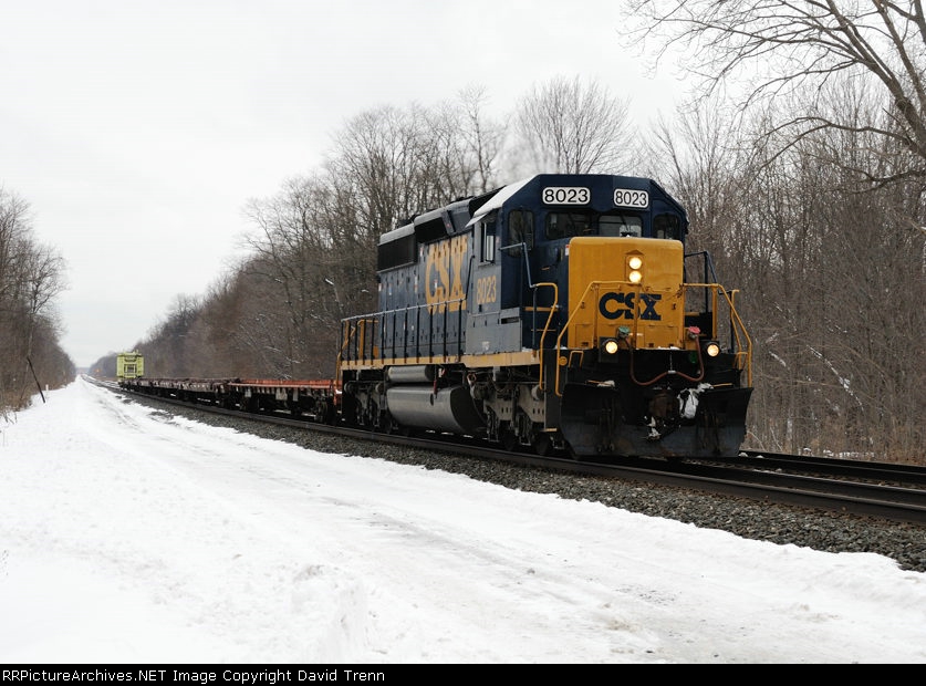 CSX 8023 leads Eastbound CSX W039-13 at MP QD122 on track number two.