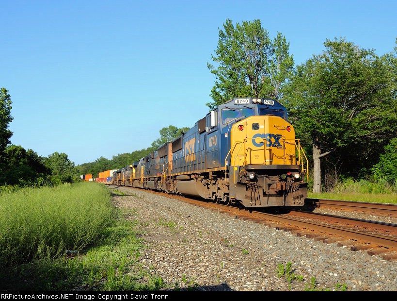 CSX 8740 leads Westbound CSX Q151 at MP122 on track number two.