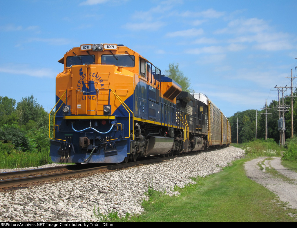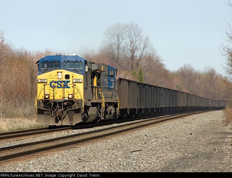 A Westbound CSX Mty coal train is approaching CP120.2 on track #1 after picking up these cars from the B&LE in Conneaut, OH.