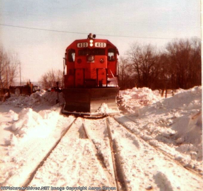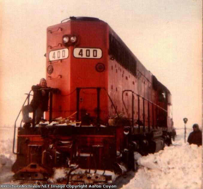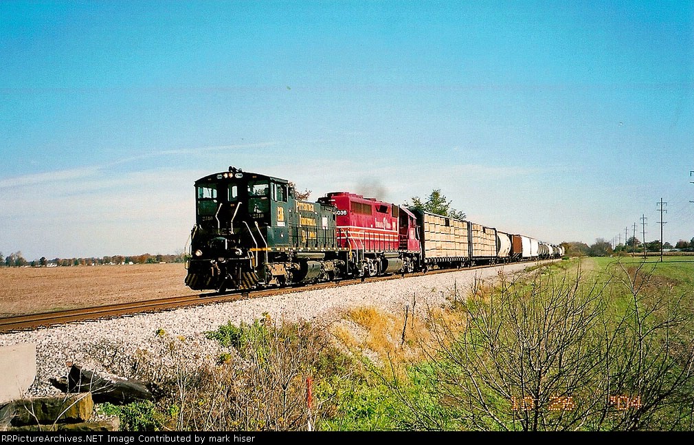 IORY 4032, on the 1st Trick Court House Local (WASH-A), rounds the southwest leg of the wye to pick up their second unit, IORY 5005, north of the diamond.