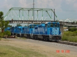 In 1998, a railfan on a weekend could find Baldwins, Alcos, and early Geeps at!the Port of Muskogee. Hiding literally back in the trees was AS616s 52 & 53, by this time owned by SMS Rail Services. A good shot was impossible without a chain saw, a boom truck, and several days effort, so this is what I could get.