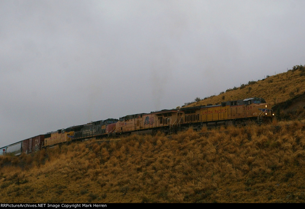 With UP-5607 in the lead, the power has reached the top of the grade to Pritchard Creek, Oregon