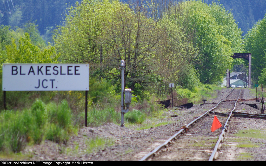 The power heads into the yard to get in the clear for the Centralia Switcher to handle.