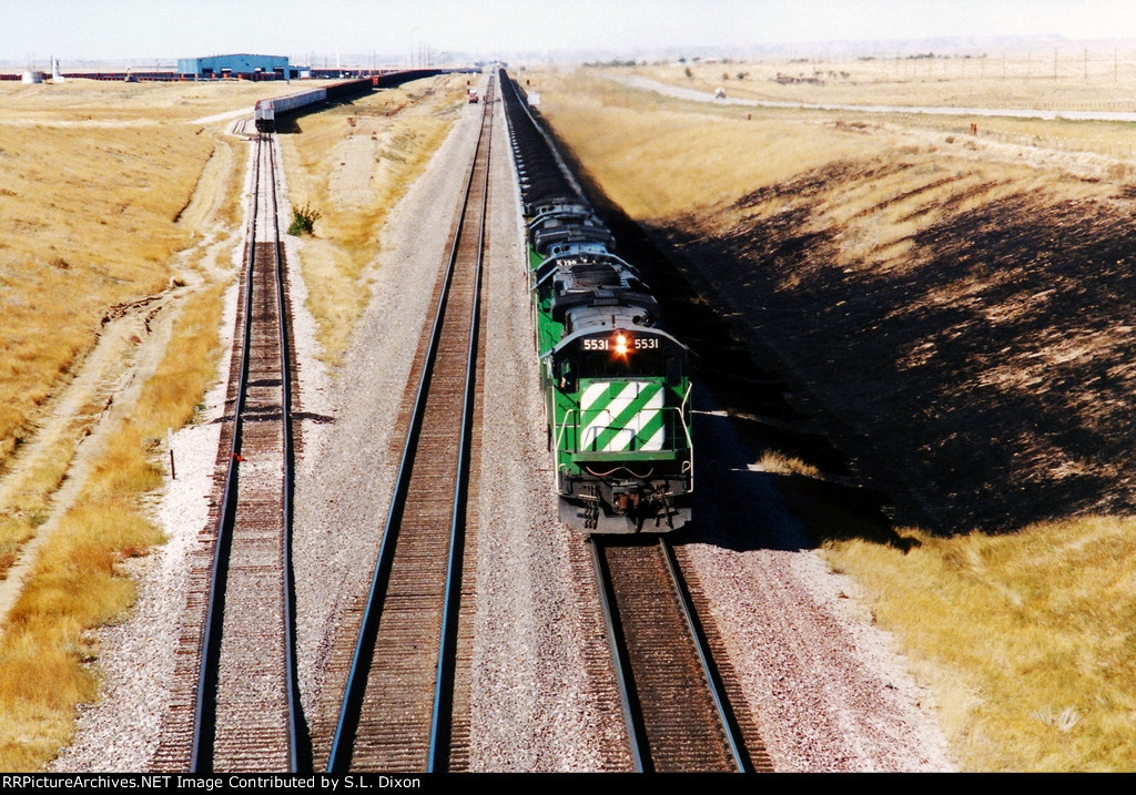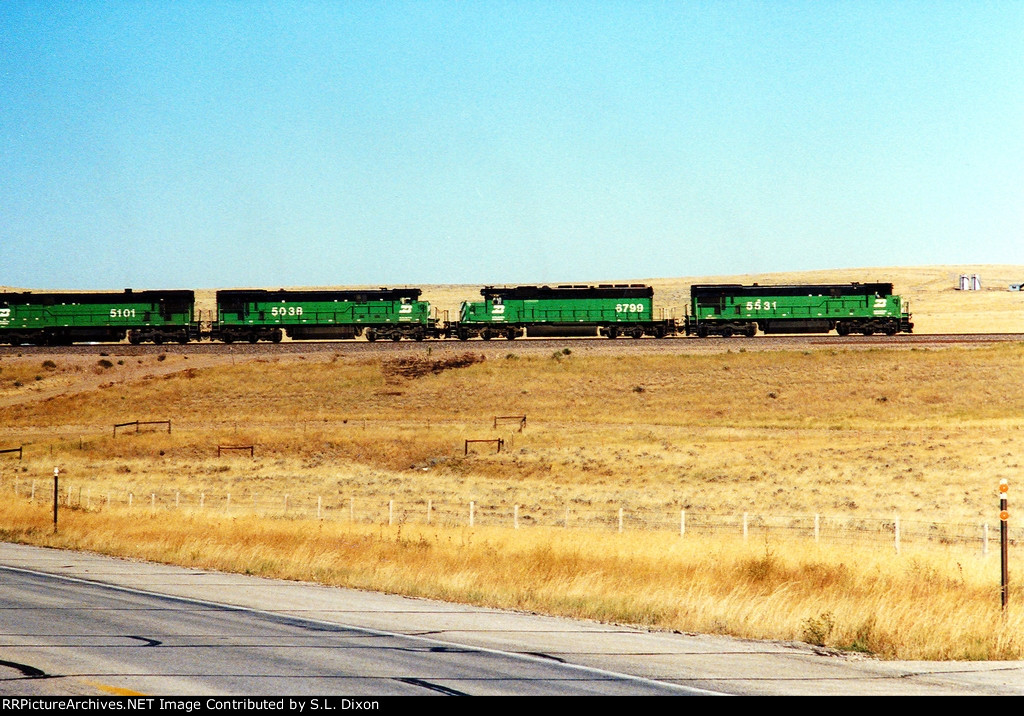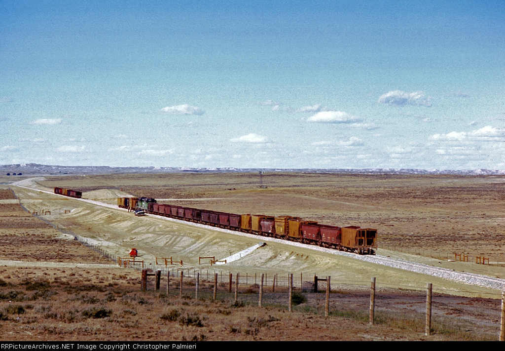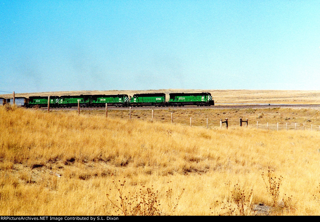Typical lashup before the BN macs took over southbound in the Thunder Basin National Grass Land.