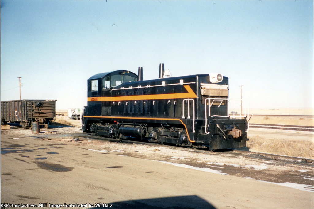 Trancisco Railcar Maintenance NW2 #50 at Bill, WY was ex-NADX 50, nee-C&O 5210, later became Trinity Railcar #Y3235. Date of photo approximate.