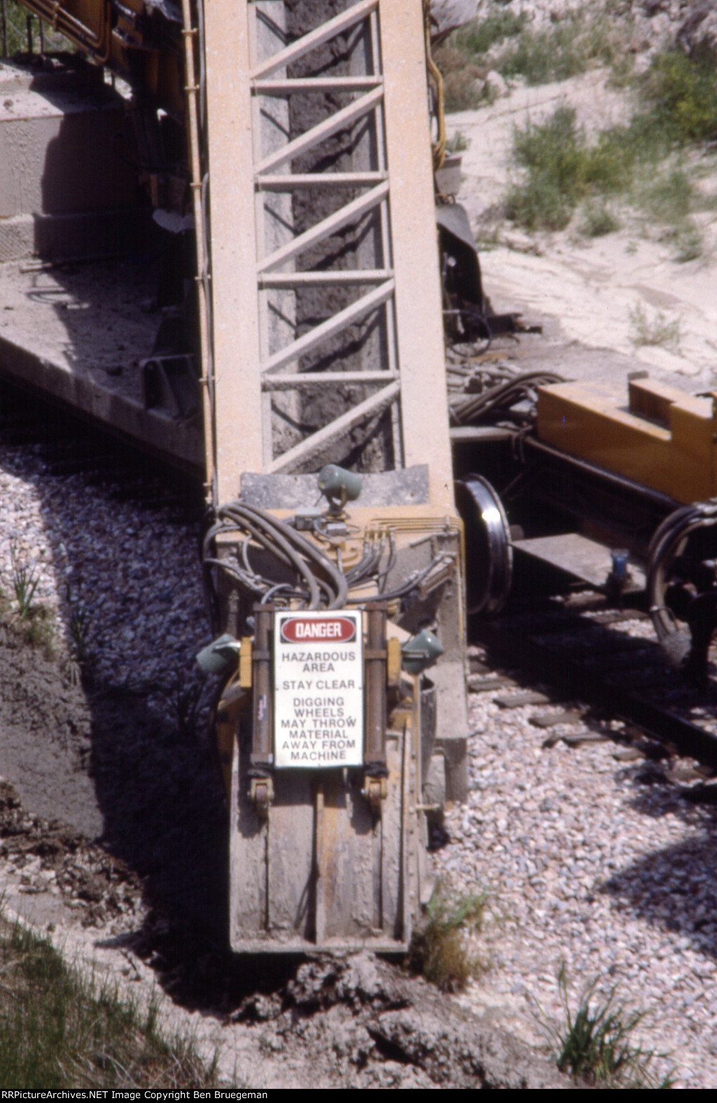 A rail train and a ballast train work at M.P. 75 near Bill, WY on the construction of the BN's Orin Line. The Baldwin locomotives are Neosho Construction Co. (NCX) RS12 6494 and S12's 6495 and 6493, former SCL/SAL units.