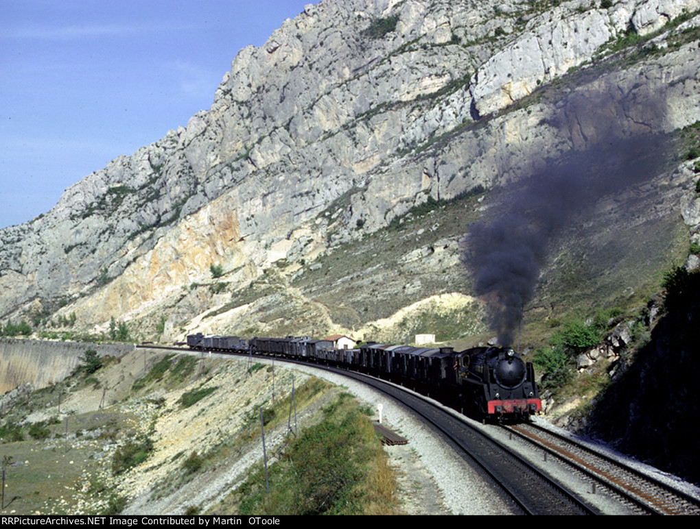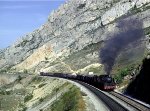 Typical freight train in the 60’s headed by a Mikado 2-8-2 type. The track had the rail welded, first step before the electrification (1.500V CC) between Burgos and Miranda de Ebro, that took four years for completion. Photo at Pancorbo. Photo made by the late Robert F. Collins and appeared in my article "RENFE 1964 Valencia y Pancorbo in Maquetren in late 2010. (Not that I speak or write Spanish. It was translated.)