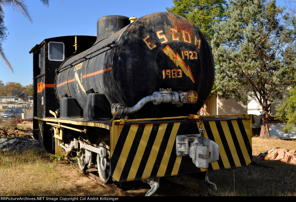 Colenso power station was built by the South African Railways in the 1920s to supply power to the electrified Glencoe to Pietermaritzburg section of the Natal mainline. The power station was sold to the Electricity Supply Commission (Eskom) in 1927. In 1937 the power station acquired the Escom, a 0-6-0 fireless steam locomotive, for use as shunter. Instead of a boiler, this locomotive type has a large insulated pressure vessel to hold steam under pressure, suitable for yard work at sites where large steam generating plants are available to recharge the pressure vessel. Escom was built by W. G. Bagnall and Company and served at Colenso power station until it was closed in 1984.