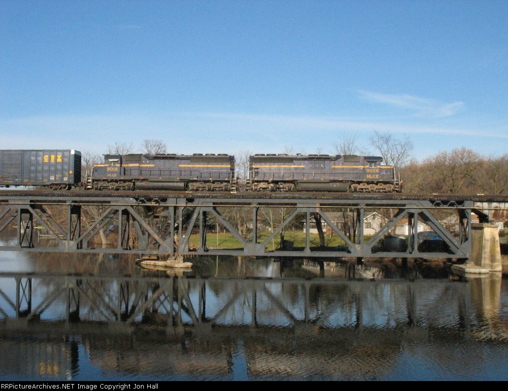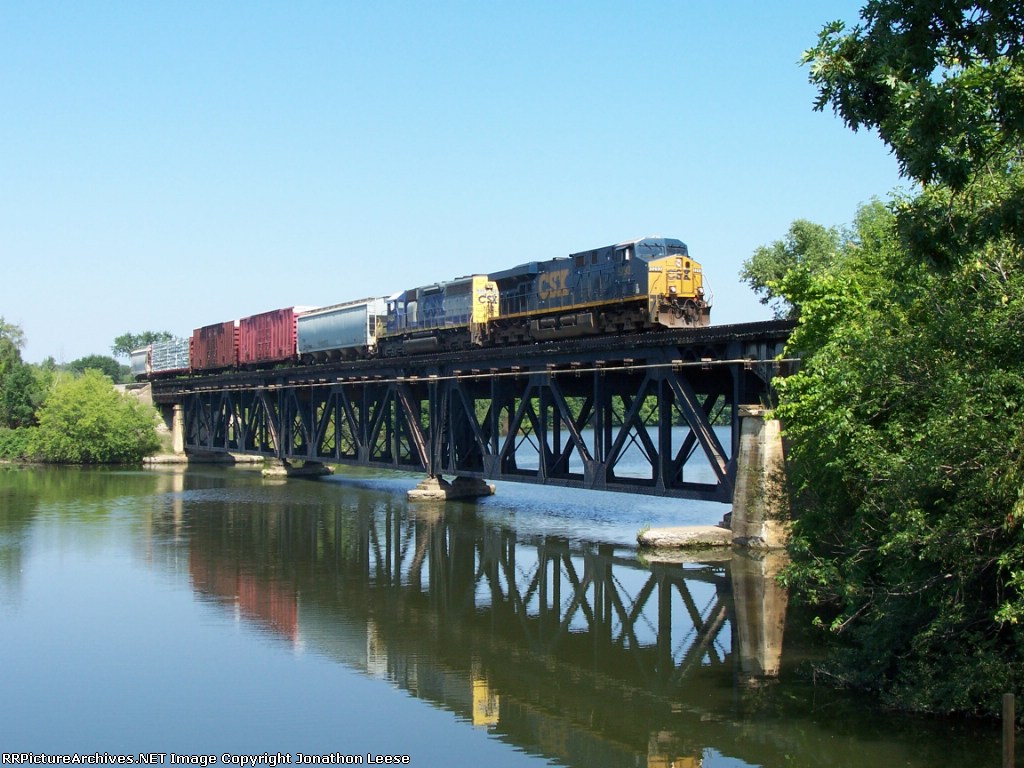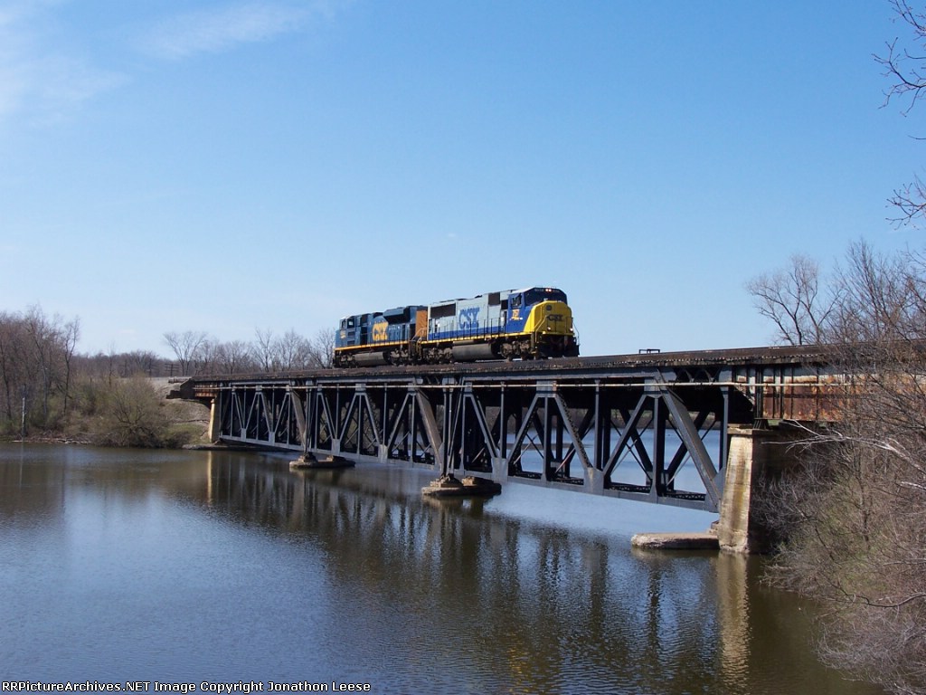 A very short CSX Q326 rolls east across the bridge over the Thornapple River near Whitneyville.