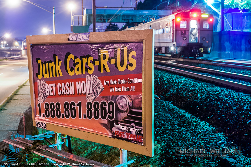 A junky train of Arrow IIIs at Green waiting to come east back in 2008 when the 500-series trains were only going as far as Newark Broad Street. Some crappy sign along Main Street in East Orange almost seems to be reaching out to NJ Transit.