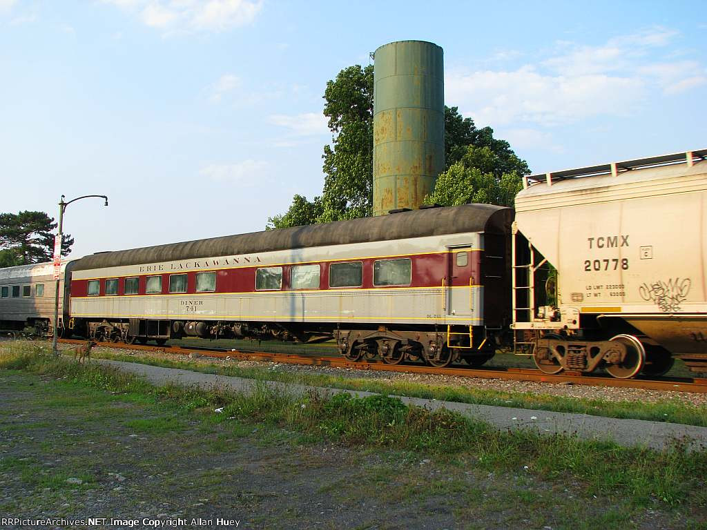 One of the former DL&W dining cars saved by the Erie Lackawanna Dining Car Preservation Society. This car was once part of Lackawanna's Phoebe Snow consist, constructed by Budd in the late 1940s.