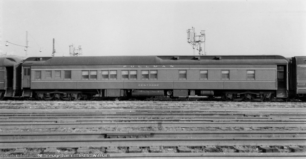 10S-1DR-2C sleeper, Lot #4527, Plan #2585D/E, 1917, 1 of 20 such sleepers built in that Lot, 1 of 16 for assignment to the UP, acquired by PRR at the 12/31/1948 divestiture, sold for scrap in 1962. Scanned with an Epson V550 from a duplicate Ektachrome 35mm slide. Photographer is unknown.