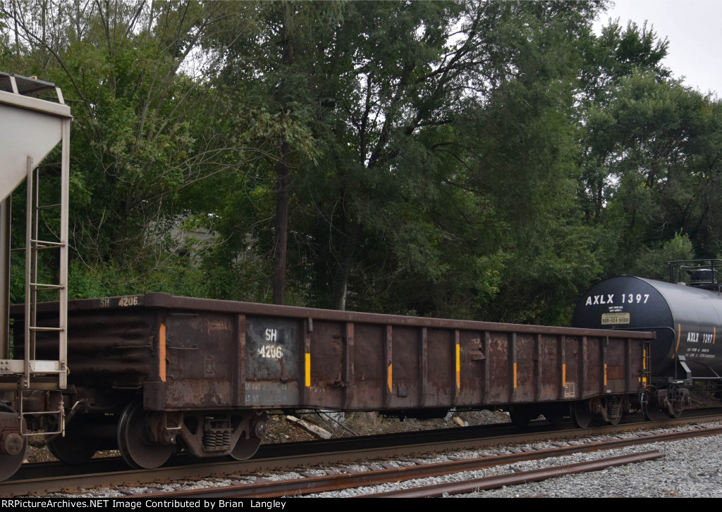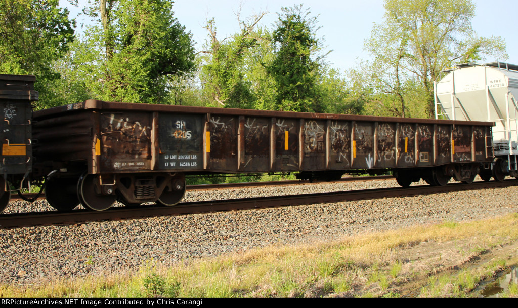 SH 4205 is seen in the consist of NS 12G at Cove, PA. Car is ex GNWR 4205/P&LE unknown and was built 5-80.