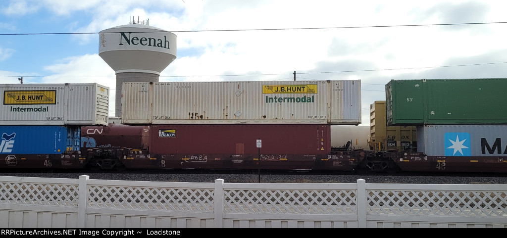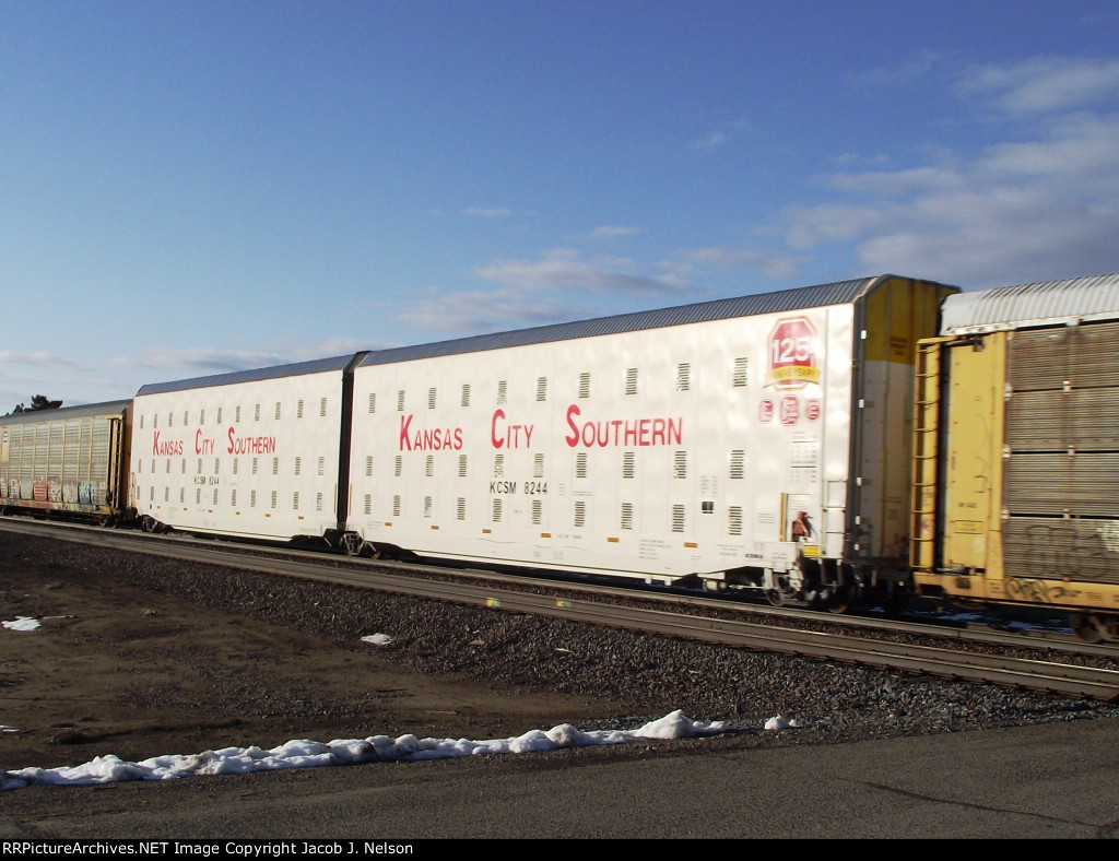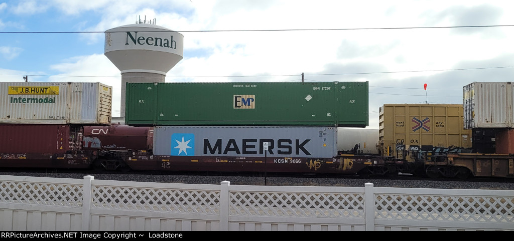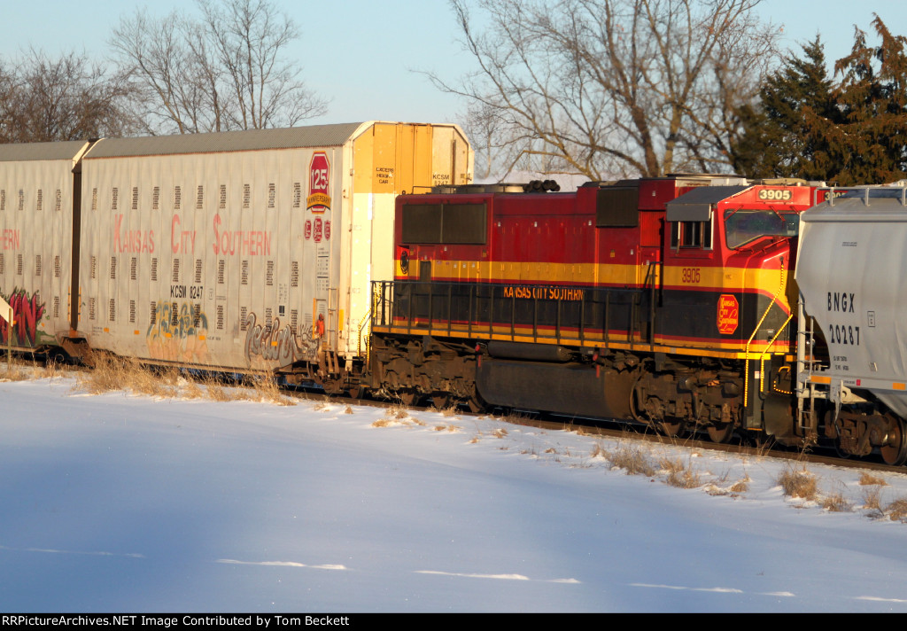 Sixty six cars back in the train, after the freight, and ahead of the 15 two unit autoracks and 15 stack platforms was this little surprise. Not the DPU itself so much-theyre fairly common on most trains, and the Q trains typically get them mid train like this, but that its a unit that was once a common sight, and now is not seen much. The DPU today was an SD 70MAC, looking good in the snow.