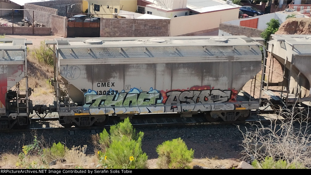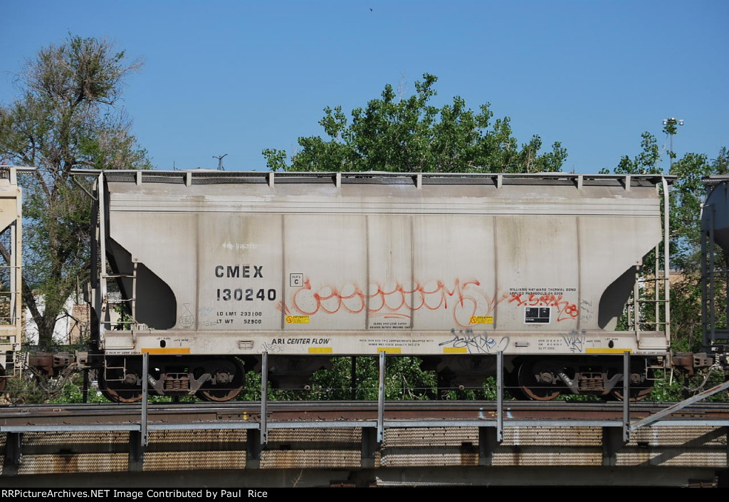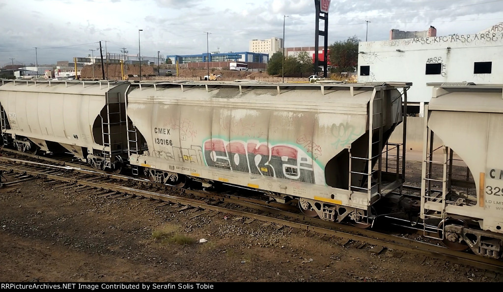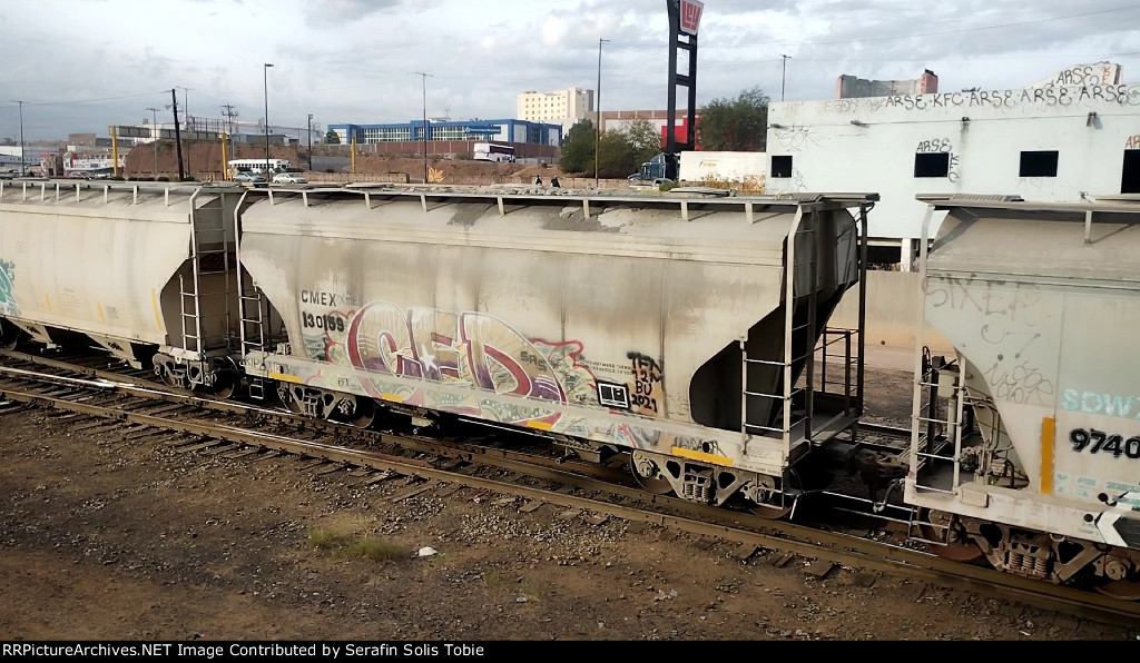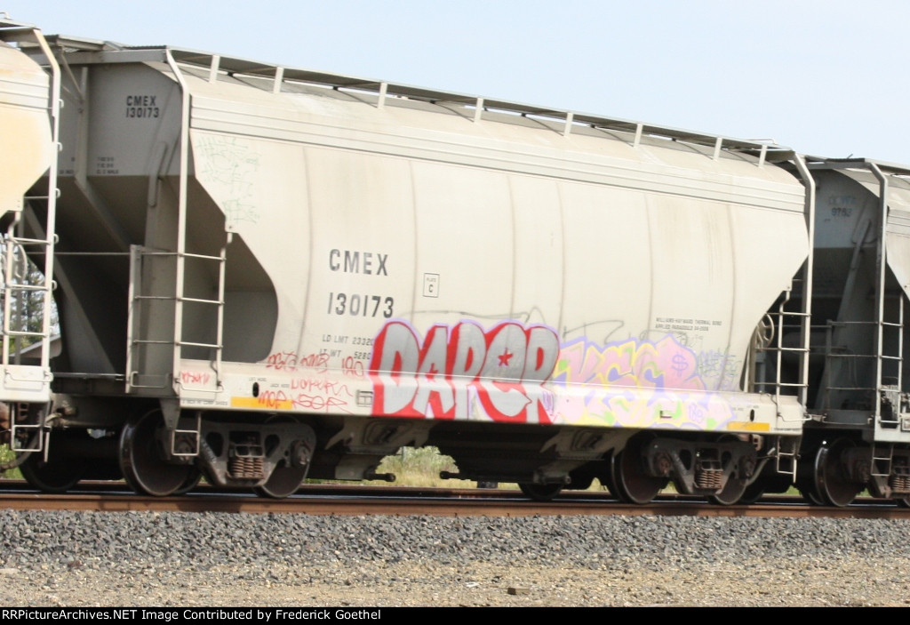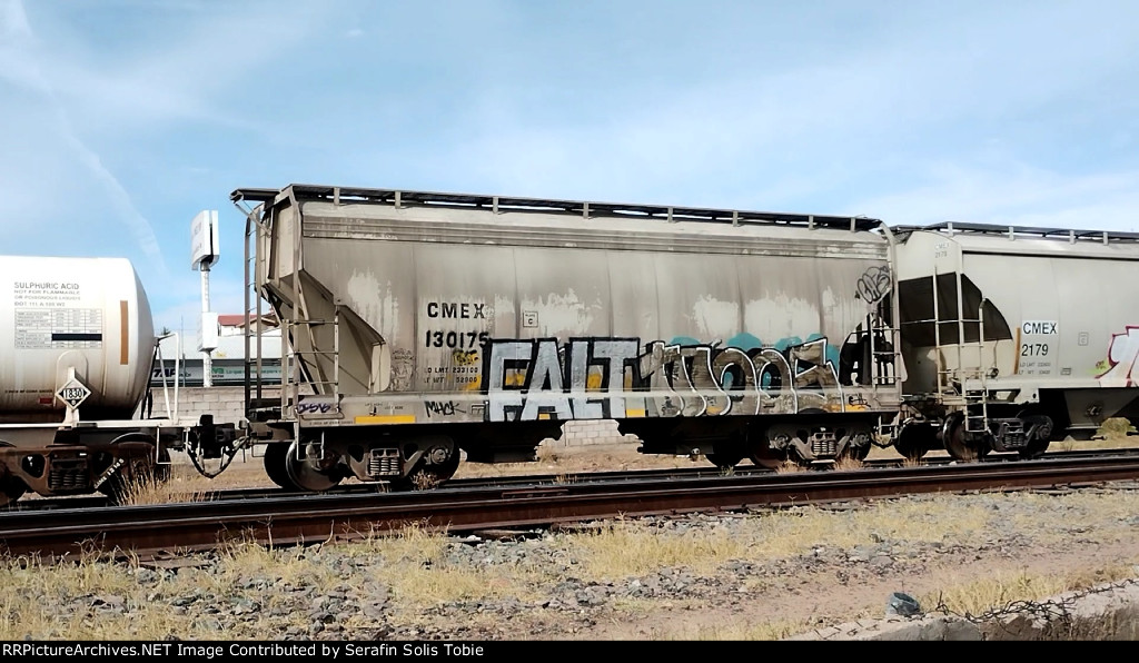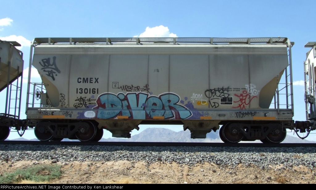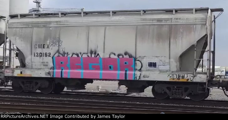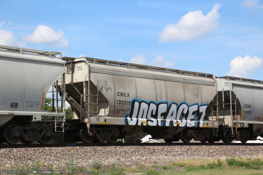 Asheville, NC, Feb 21, 2016, 10:58am: CMEX 130193: Cemex, Inc, covered hopper, 2-bay, for bulk cement service. Light weight: 53,000 pounds. Load limit: 233,000 pounds. Capacity: 3,256 cubic feet. Built April, 2006, by American Railcar Industries.
