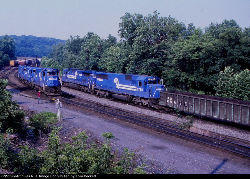ENSE rolls east through the yard as the power from CGAL approaches the hump on its way to the engine tracks.