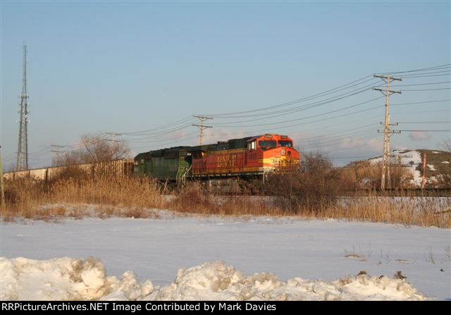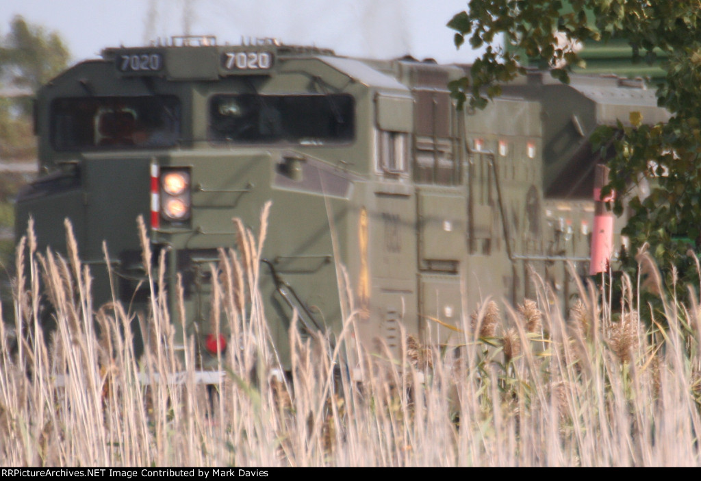 Q378-02 passes the N859 tied down on the North Controlled Siding at LLoyd Road.