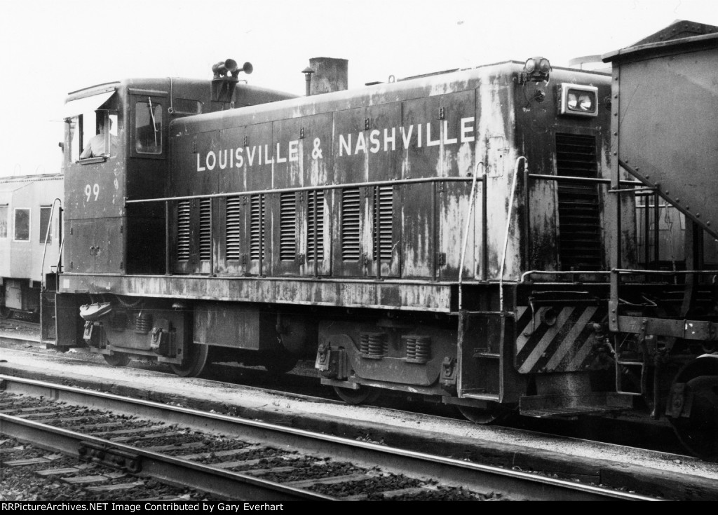 Built by GE in November of 1949 (serial #30385) as L&N #126, it was later renumbered to 99. K.M. Ardinger photo