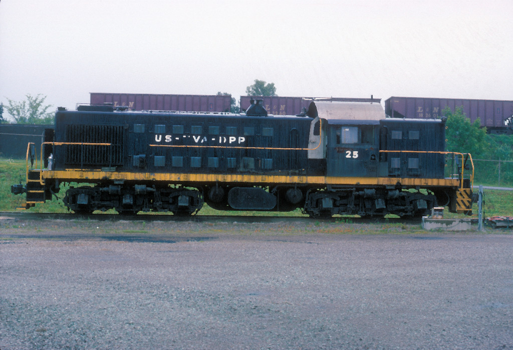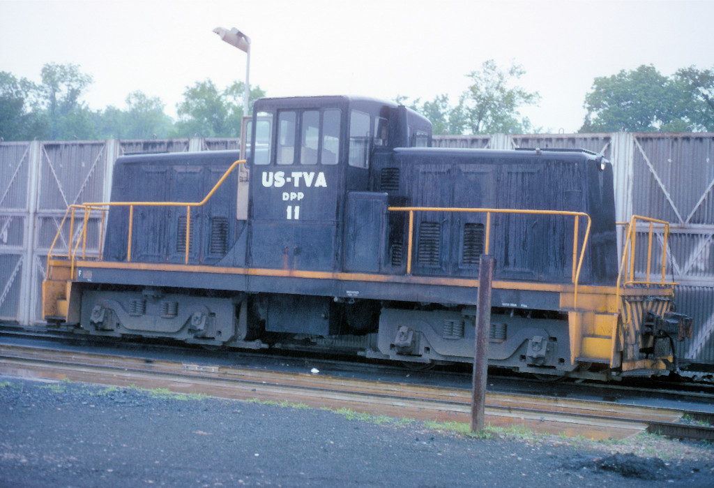 The famous "Baby Trainmaster" is "laid up good order" at the Tennessee Valley Authority's Gallatin plant. Built in 1958, it has spent all of its existence here & is the only one of its kind left in the United States. There have not been rail shipments of coal to the plant for years, but TVA indicates that will change soon. Ex-US Army S2 F3061 in the background. (Taken with TVA permission)