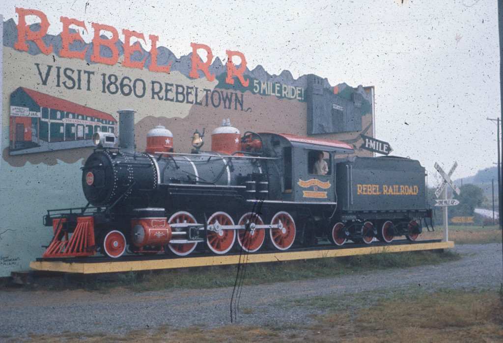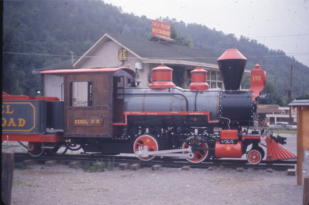 Found at the corner of route 441 and Veterans Blvd. in Pigeon Forge, TN. Built in 1887 by Baldwin as East Tennessee, Virginia, and Georgia #419, became SOU #107 in 1894, SM #107 in 1942, and retired in 1954. Exact date unknown.