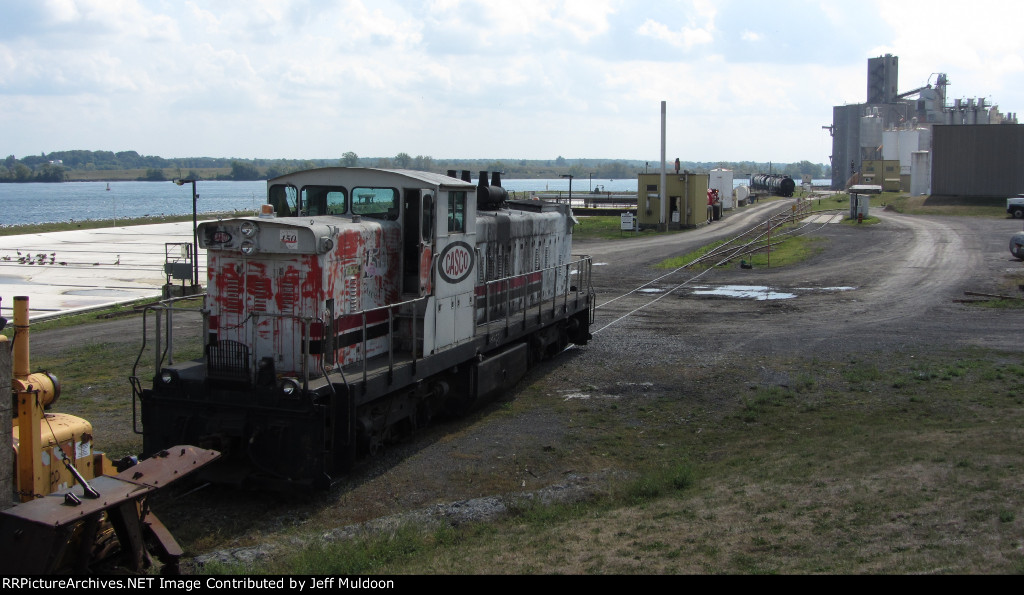 The Canada Starch switcher. A GMD1m, comes up from the CASCO Plant in Cardinal Ontario to the CN interchange.