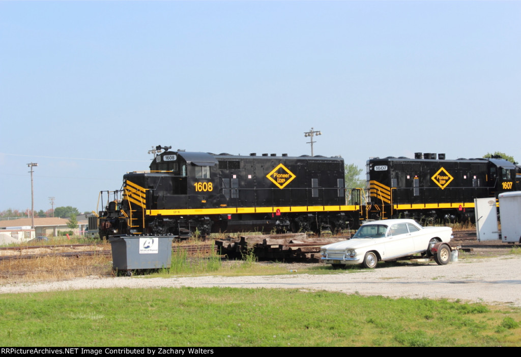 Decatur Junction #1608 and 1607 rest on a sunny day.