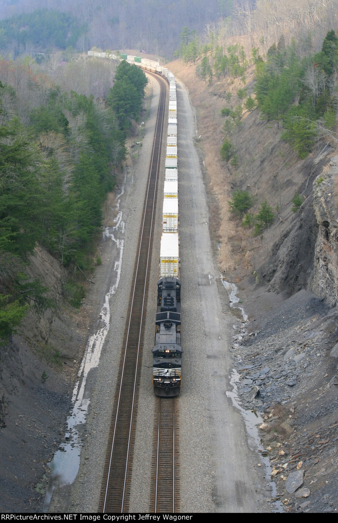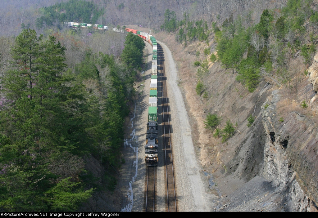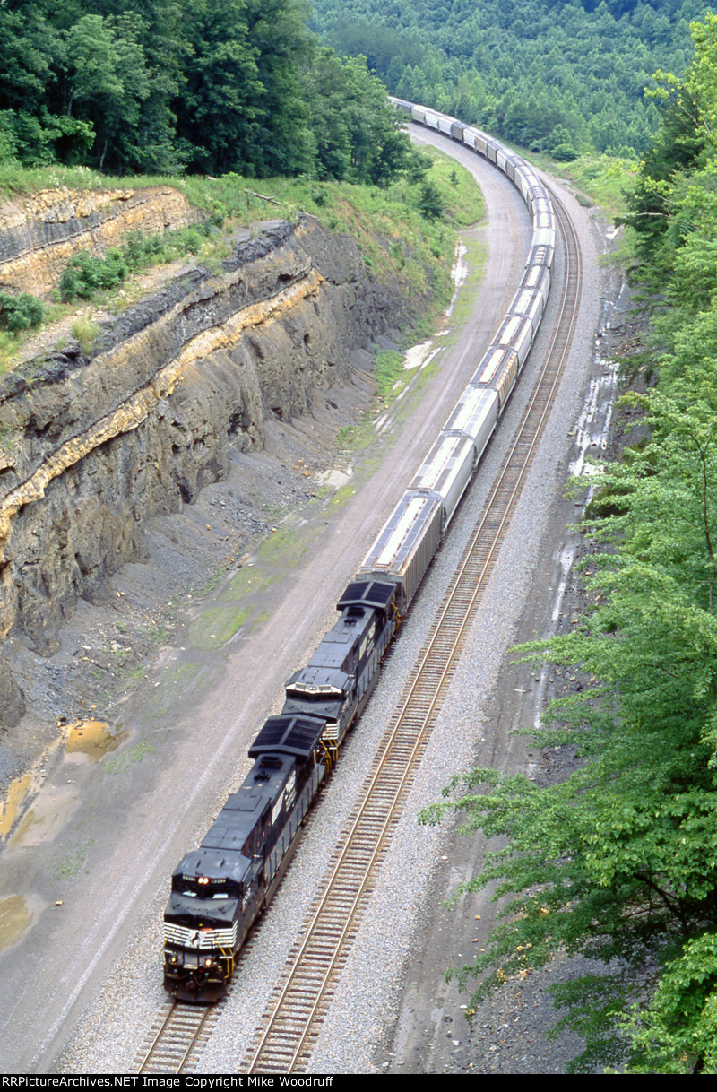 NS #229 passes a much slower #147 just north of KD Tower. 229 was moving at 60mph, while the 147 was down to less than 10mph