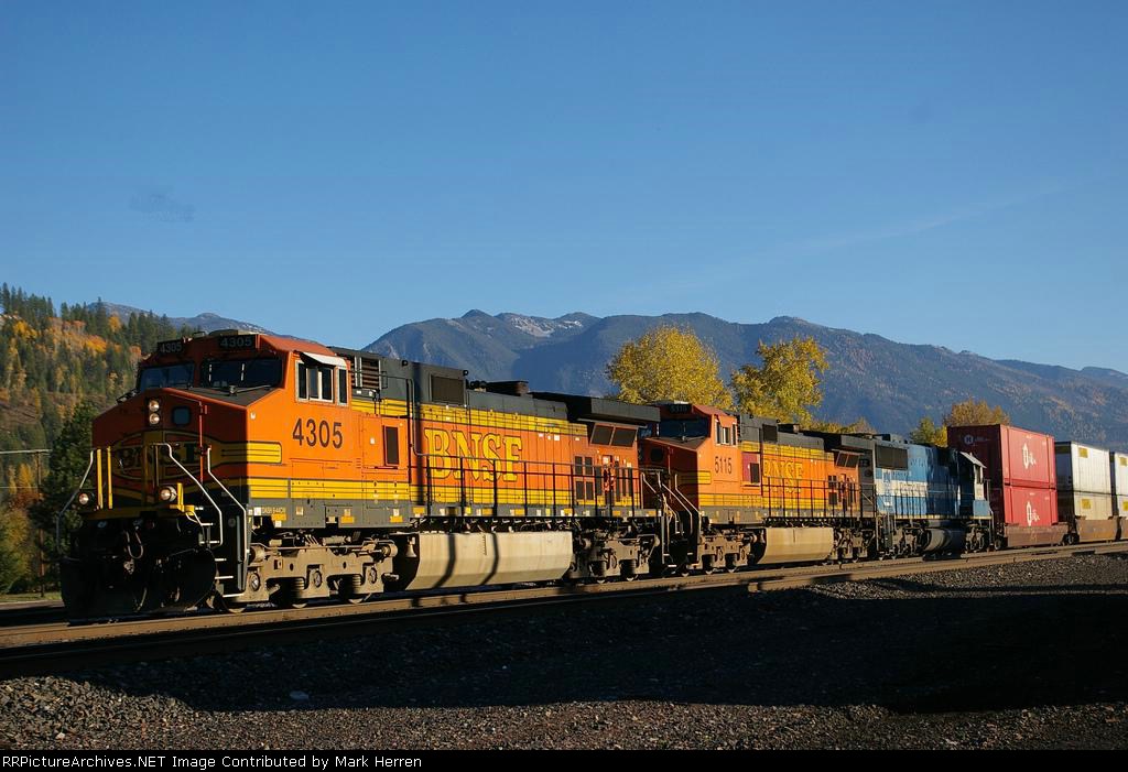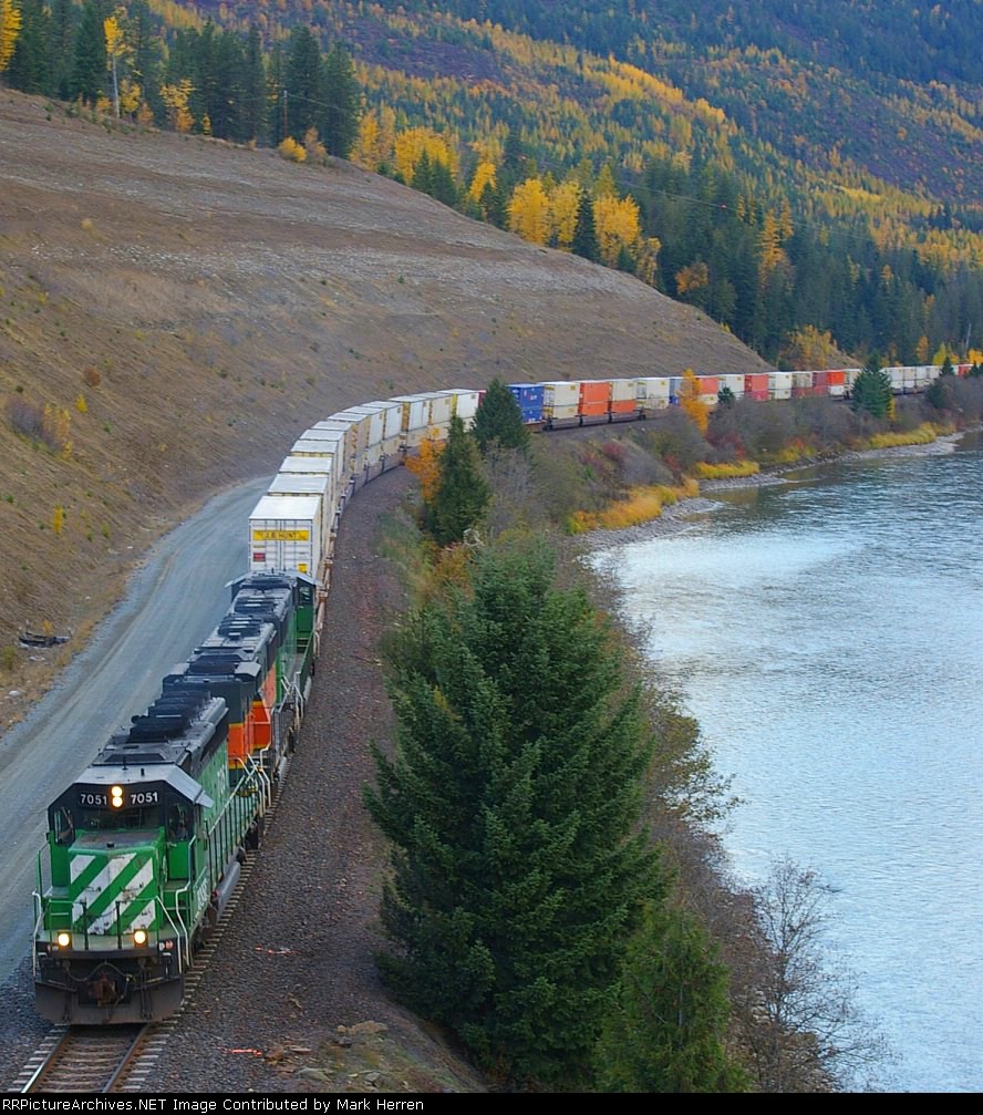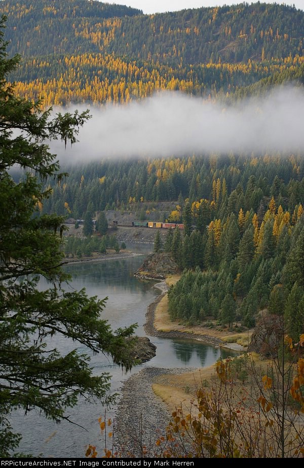eastbound doublestacks head east along the Kootenai River