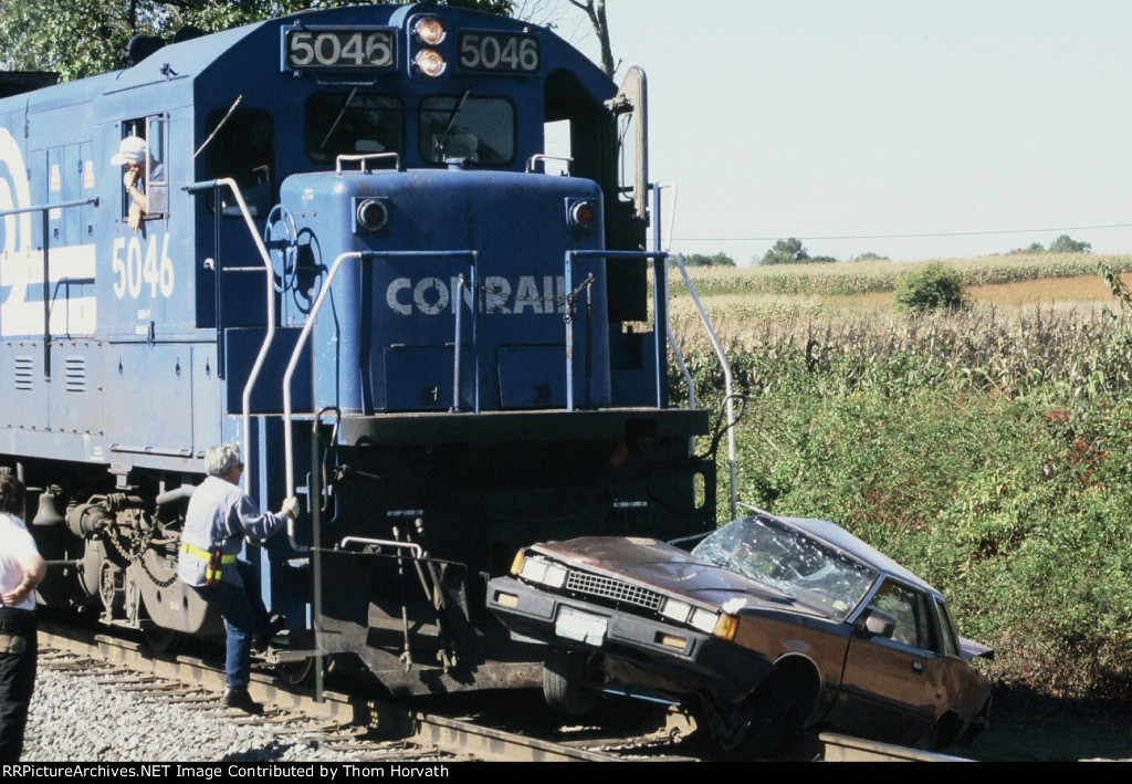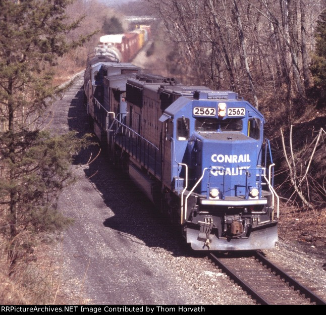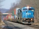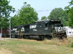 NS GP38-2 Hi-Hood 5180 (ex-Southern) leads the transfer with the Black River & Western, train H76, as a push-pull with Low-Hood GP38-2 5337 (PRR ex Conrail) on a sunny Sunday afternoon, Main Street, 1210 hours. Newly installed but non-operating signal for the to be built Stanton Station to Flemington Junction meeting siding can be seen behind signals 481 and 482.