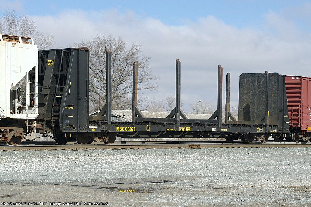 | AAR Class: | FBS: Specialty Bulkhead flat cars. Equipped with fixed or permanently attached movable bulkheads or ends a minimum of three feet in height and flat floor for general commodity loading. |