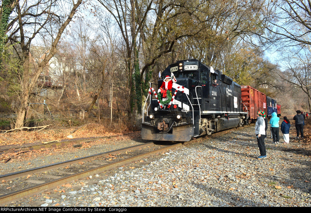 A nie shsot of TOYX 1927 with the letters PU for PU Tower and Toys for Tots banner also seen on this car. Railfans getting a shot of this car. This car is new to RRPA noted in the previous photo of TOYX 1927. History of TOYX 1927 Model 50ft Boxcar 5,347 cubic feet, Built November 1977 Builder FMC Corporation Portland, OR. Past RR Owners; Meridian & Bigbee, Marquette Rail, Laurinburg & Southern, Columbus & Greenville, Alabama & Gulf Coast, Current Owner TOYX Kenvil, NJ This car was acquired by Marquetette Rail in Novemebr 2007, and became their MQT 1042. It went to the Laurinburg & Southern in April 2017 as LRS 7933 and was again transferred to the Columbus & Greenville in June of 2023 as their CAGY 7933. Control fo this car was eventually acquired by the Alabama & Gulf Coast RWY, a subsidiary of the Genesee & Wyoming. AGR donated this car to TOYX in October 2025. NS moved this car from Alabama to NJ .It is stored in NJ, and used to collect Toys for Tots seasonal collections. Source; https://www.toyx.org 1927