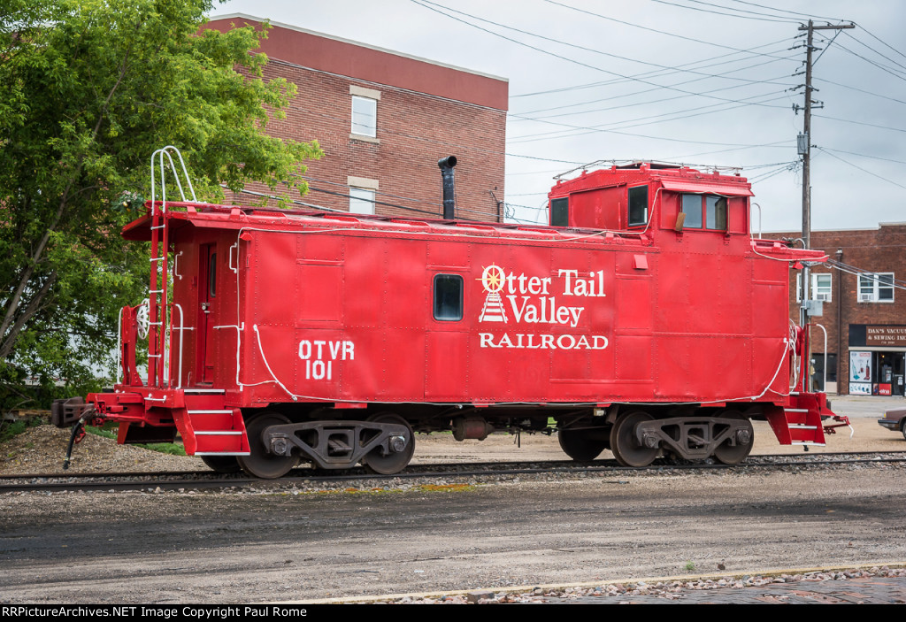 Originally built by the ATSF shops in 1949 as ATSF 545, later renumbered 999196 (class Ce-1), the caboose ended up on the Otter Tail Valley RR roster as their #101. Eric Berg photo