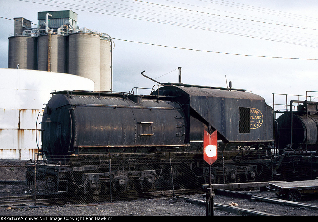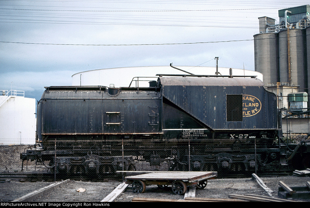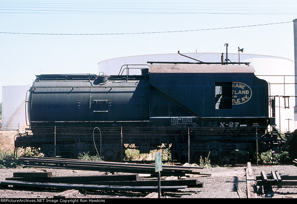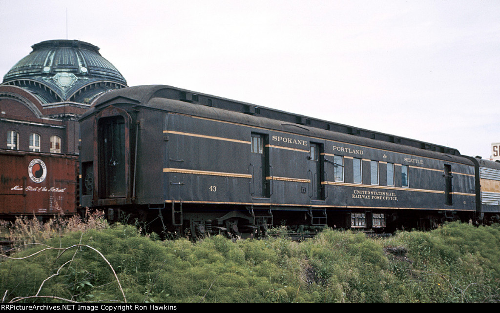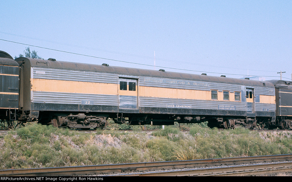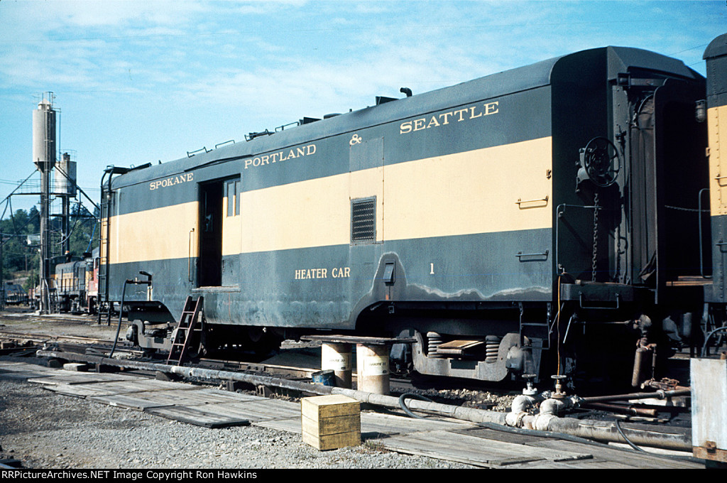 RE-UPLOAD due to missing file. Pullman Plan #3410 12 section-1 drawing room (12S-1DR) sleeper McCLEARY (built in May 1924 in Lot #4763 for the general service pool, retained by Pullman at the 12/31/1948 divestiture, sold for scrap in January 1960 to the Purdy Company), SP&S Plan #4119 8 duplex roomette-6 roomette-3 double bedroom-1 compartment (8DXR-6RM-3DB-1C) sleeper #366 (built by Pullman-Standard in September 1948 in Lot #6781 as the PORTLAND, name removed and replaced by #366 in March 1954, withheld from Pullman lease in October 1968 and redesignated as a dormitory, leased to Amtrak from 1971 to circa 1974, no further info), and a UP Plan #9017 ALPINE-series 14 section (14S) sleeper (built by AC&F in 1954 in Lot #3816, rebuilt to a 44 seat leg rest chair in 1965, and sold to Amtrak in 1971). Scanned with an Epson V550 from an original Kodachrome 35mm slide.